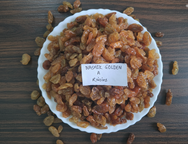 Nashik Long Golden A raisins is a high-quality (Grade A) dried grape raisins produced in the Nashik vineyards of India. As a bulk supplier and export partner, these raisins offer consistent quality defined by a bright yellow color achieved through special treatment, and a desirable elongated or "long" shape. They feature a naturally pleasant sweetness and a reliable soft texture, meeting the specifications required for international food manufacturing and ingredient applications.