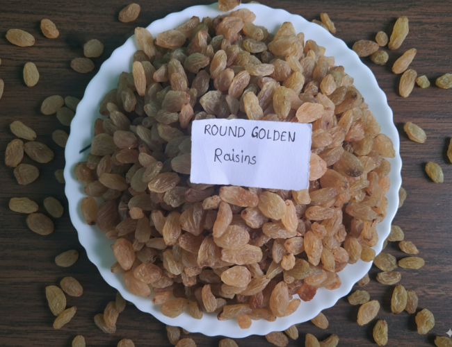 Round Golden Raisins are premium sun dried grapes known for their uniform shape, bright yellow color, and mild sweetness. These are carefully processed under strict hygienic conditions. These soft and chewy raisins are ideal for baking, confectionery, and healthy snacking. As a top-tier exporter, we provide consistent, high-quality bulk supply in export-ready packaging to meet international market standards.